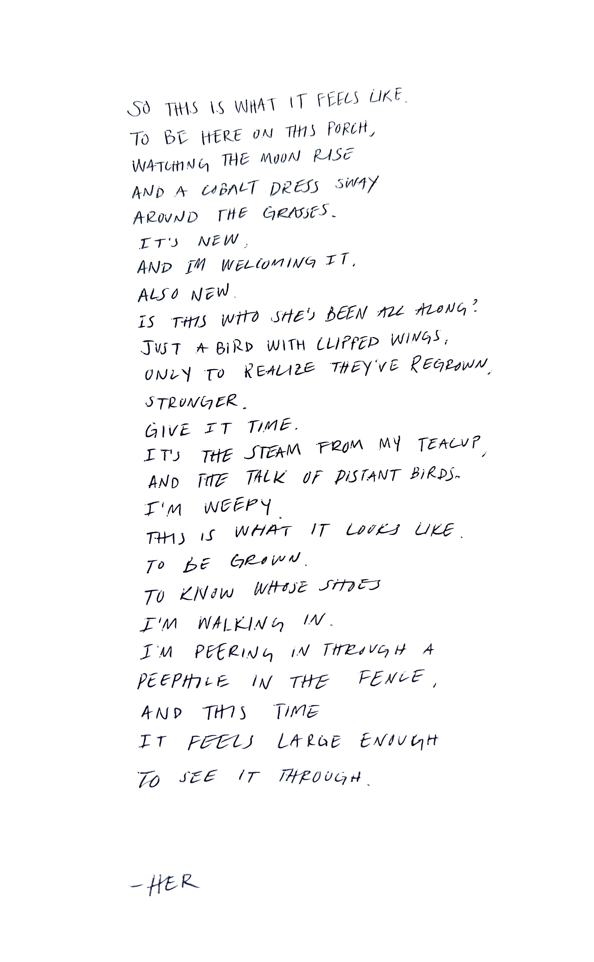 It was on a Saturday as the sun set, amidst the celebration of my bridal shower, when I wrote this poem. A heartfelt dedication to my past self, who only recently realized she had control over her own life, free to roam and become who she was meant to be. It is here where I recognized my first love note to her, my childhood self.